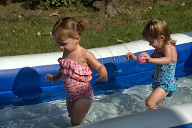 Sunday - Another fabulous day in Broken Arrow. Aunt Shanny made Mommy awesome pin cushions for her scrappy pins. We tried to show the girls how to use their new softball bats, but they were more interested in running around the backyard. This afternoon we let them go swimming and they completely enjoyed themselves. They are just so stinking cute together!